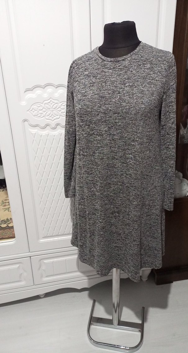 boy 93 cm göğüs 52 beden genişliği 54 cm Gri renkli, yuvarlak yakalı ve uzun kollu kadın sweatshirt, rahat ve bol kesimiyle günlük kullanıma uygundur.