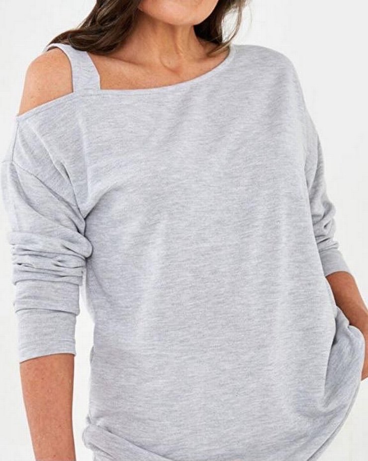 Gri Uzun Kollu kayık yaka triko