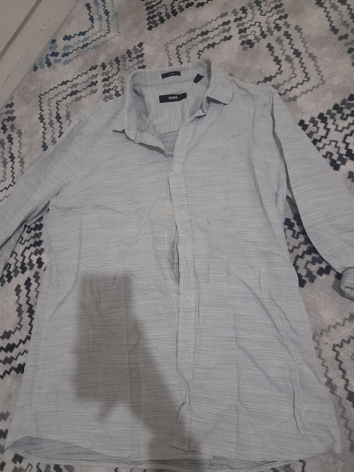 Gri renk, keten kumaştan yapılmış uzun kollu erkek gömleği. Düğmeli ve yakalı, rahat kesimiyle günlük sokak stiline uygundur.