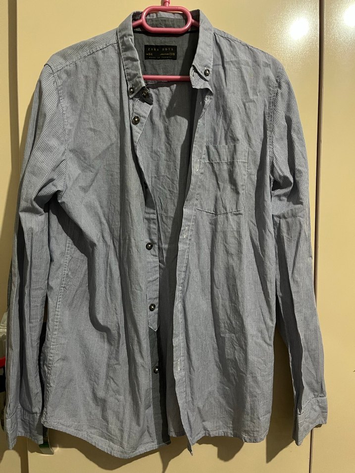 Gri renkli, keten kumaştan üretilmiş, uzun kollu, düğmeli ve yakalı gömlek. Günlük kullanıma uygun, rahat kesim ve sade tasarım.