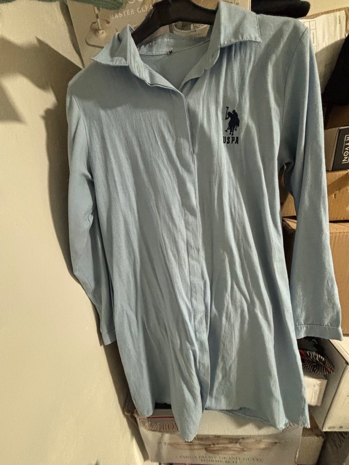 Gri renkte, keten kumaştan, düğmeli ve yakalı uzun kollu bol kesim gömlek. Günlük kullanıma uygun rahat stil sunar.