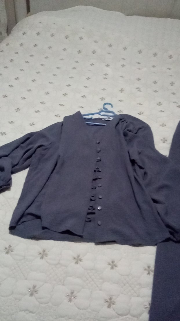 Düğmeli, uzun kollu, gri keten gömlek. Salaş kesimi ve bisiklet yaka detayıyla günlük kullanıma uygunn sıfırdan farksız yeni bir kere giyildi
