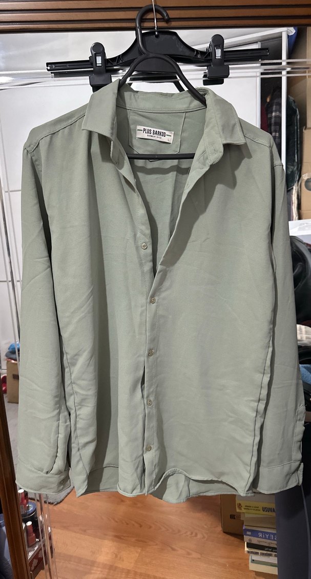 Mint yeşili yazlık kumaş uzun kollu gömlek. Düğmeli ön kısmı ve bol kesimiyle günlük rahat kullanıma uygundur.