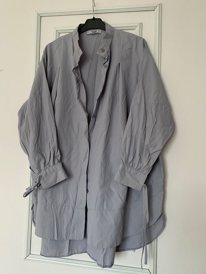 Gri Uzun Kollu Keten Kadın Gömlek