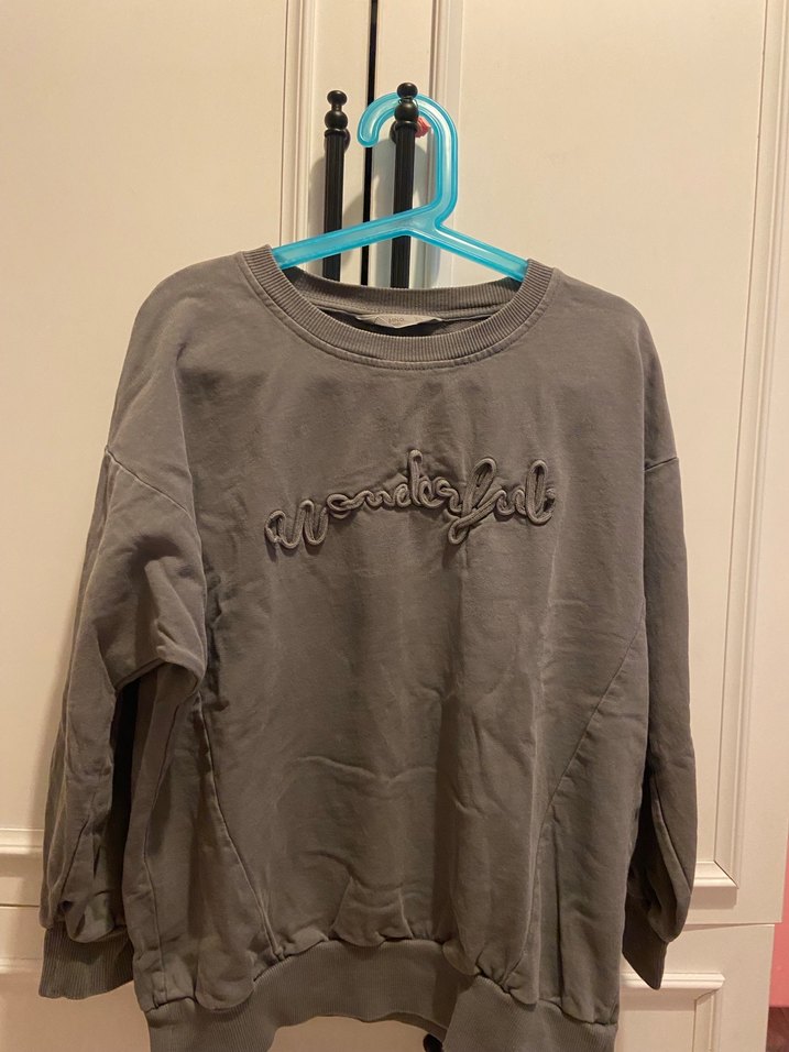 Gri renk, yuvarlak yakalı, uzun kollu ve rahat kesimli kadın sweatshirtü, yumuşak keten kumaştan üretilmiştir. Düz desensiz ve gündelik kullanıma uygundur.