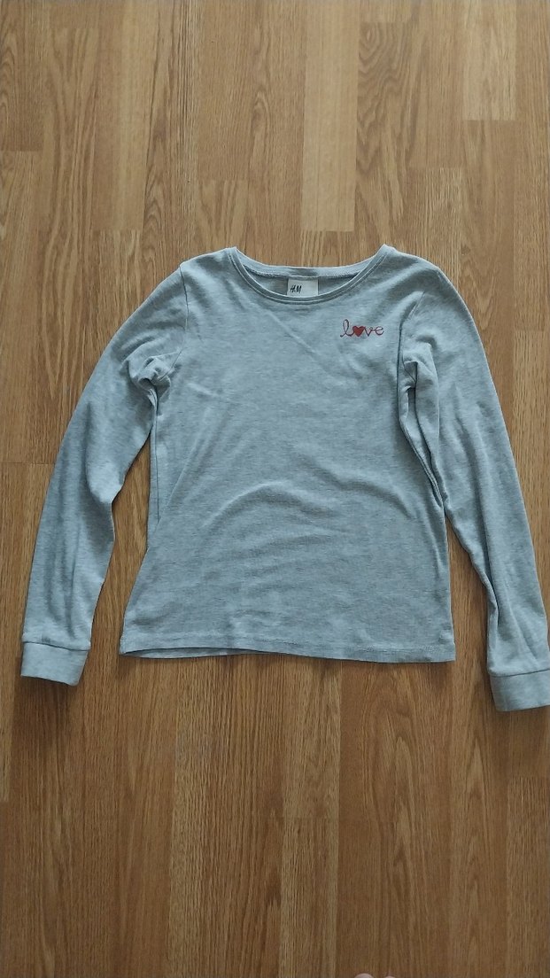Gri renkli, uzun kollu kız çocuk tişörtü, yuvarlak yaka. Küçük 'love' nakışıyla sade ve rahat bir tasarıma sahiptir.