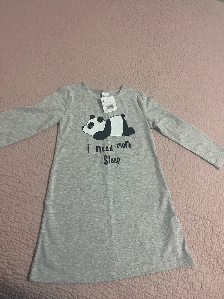 Yumuşak gri kumaştan, uzun kollu ve bol kesim kız tişörtü. Bisiklet yaka, panda baskılı ve "i need more Sleep" yazılı rahat sokak stili. Geceliktir