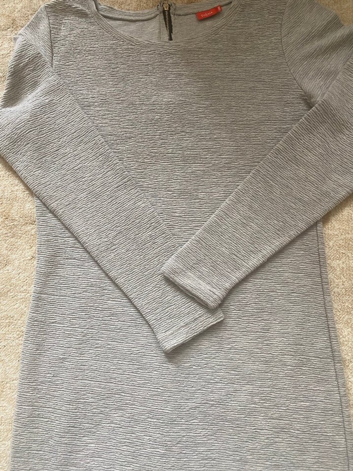 Gri renkte, uzun kollu ve yuvarlak yakalı triko elbise, yumuşak Rahat ve sade normcore tarzıyla günlük kullanım için uygundur. 38-40 Beden
