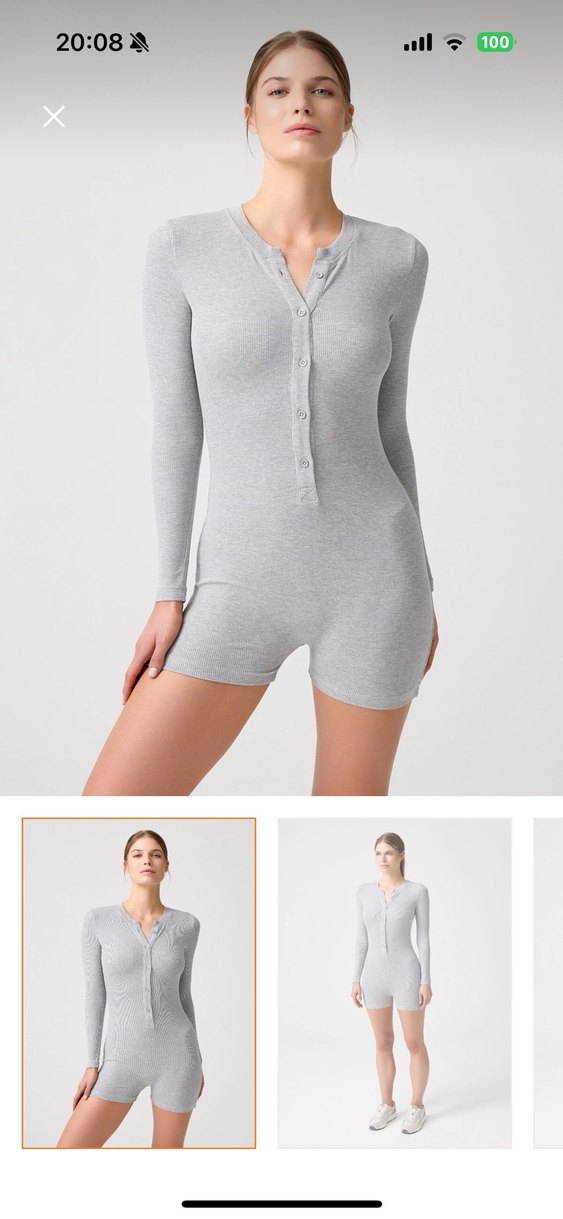 Gri renkli, uzun kollu ve düğmeli yuvarlak yakalı, vücuda oturan mini tulum. Yumuşak sentetik kumaştan üretilmiş, günlük kullanıma uygun. ✨hiç giyilmedi LOS OJOS
