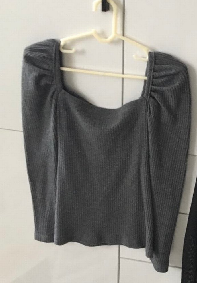 Gri Uzun Kollu Minimalist Keten Bluz