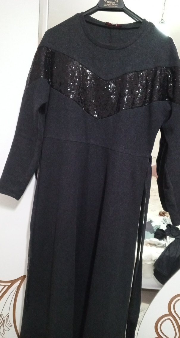 gri Uzun Kollu Nakışlı Kadın Elbise