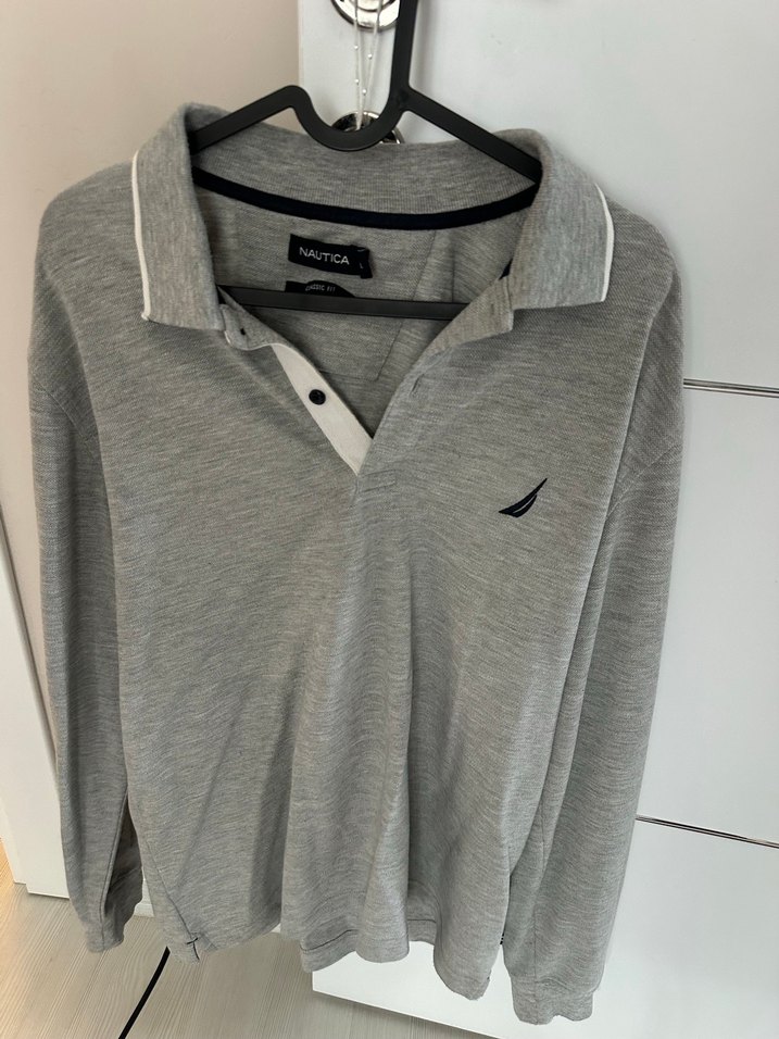 Bu gri uzun kollu Nautica polo tişört, düğmeli yakası ve rahat kesimiyle günlük kullanıma uygun yumuşak sentetik kumaştan üretilmiştir.