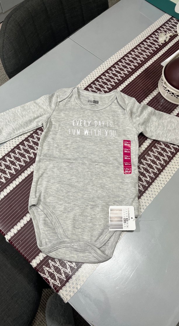 Gri uzun kollu, örgü yapıda, yuvarlak yakalı bebek body. Önünde 'EVERY DAY IS FUN WITH YOU' yazılı baskı bulunur. Rahat ve yumuşak kumaş.