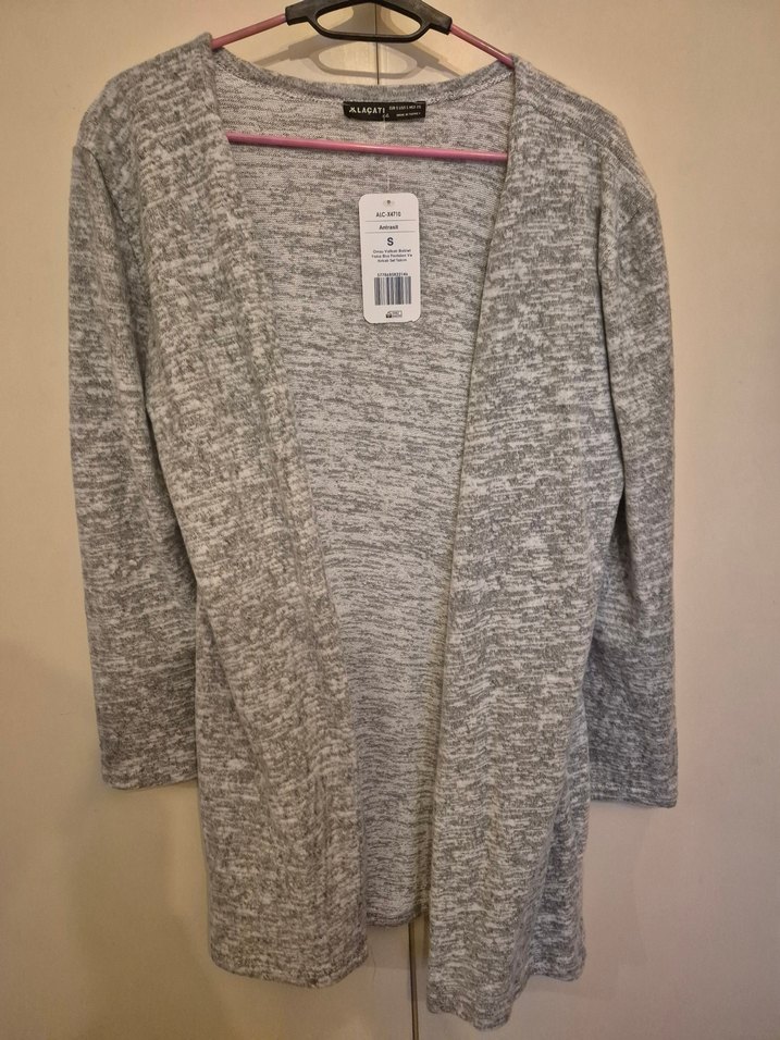 Gri renkte, yumuşak yün kumaştan örülmüş, uzun kollu ve normal uzunlukta, salaş kesim kadın hırkası. Notlu yaka detayıyla sokak stiline uygun.
