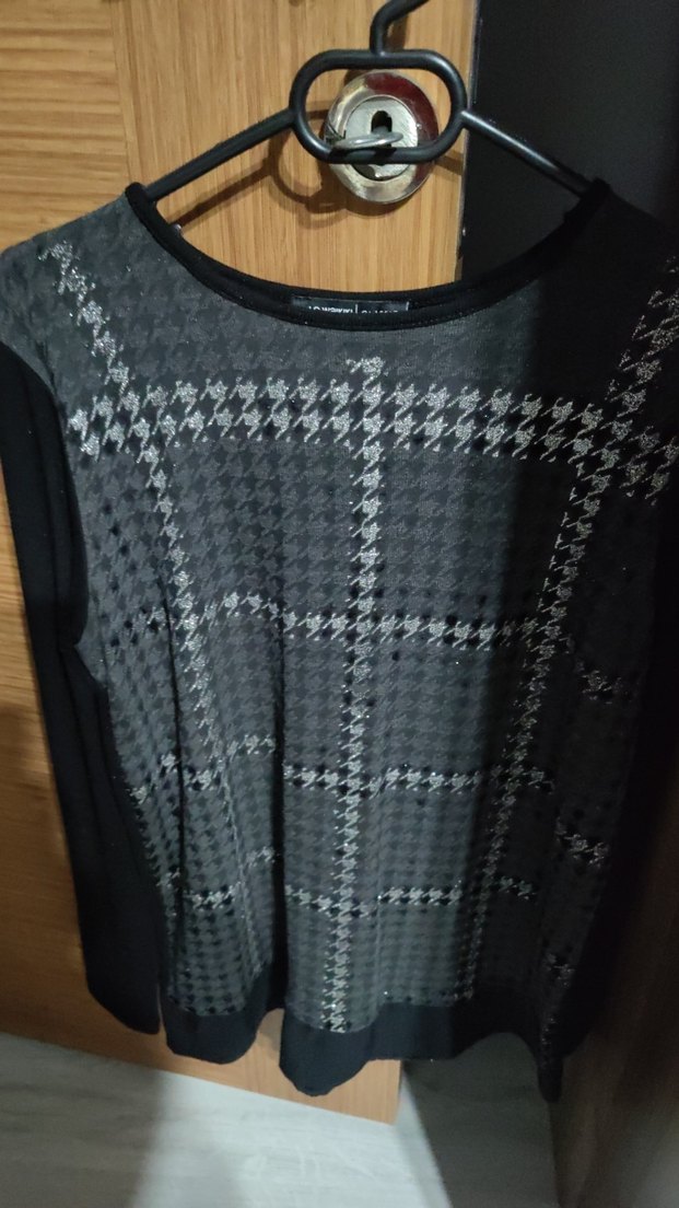 Kadınlar için uzun kollu, yuvarlak yakalı, bol kesim örgü kazak. Sentetik kumaştan gri renkte, rahat ve gotik tarzı bir arada sunar.