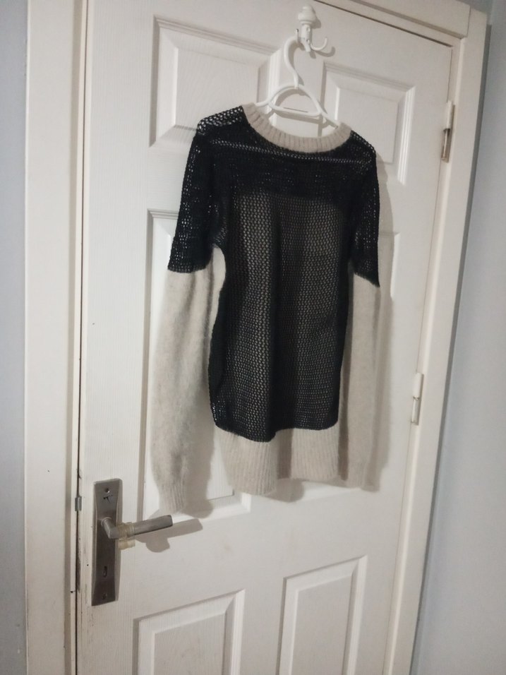 Gri renkli, uzun kollu, örgü dokulu kadın kazak, rahat kesimi ve yuvarlak yakası ile gündelik kullanıma uygundur.