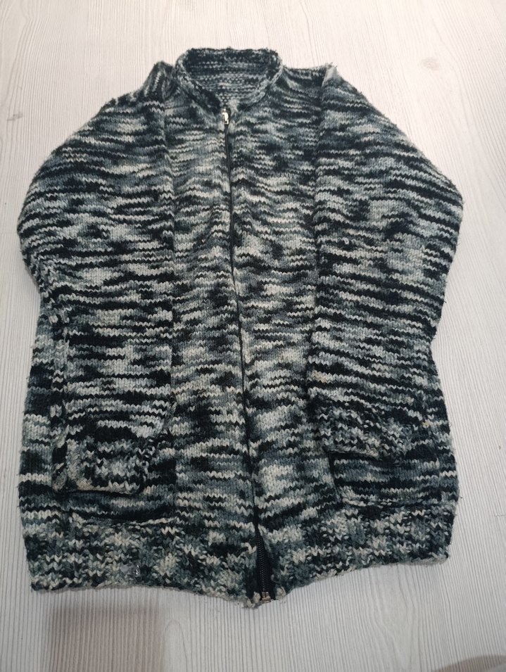 Gri renkli, uzun kollu ve boğazlı örgü kadın kazak, rahat kesimiyle günlük kullanıma uygun, sokak stili havasında.