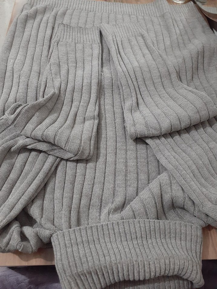 Gri renkli, örgü dokulu, yumuşak keten kumaştan yapılmış, uzun kollu ve boğazlı, bol kesim kadın triko. Rahat ve günlük kullanıma uygun.