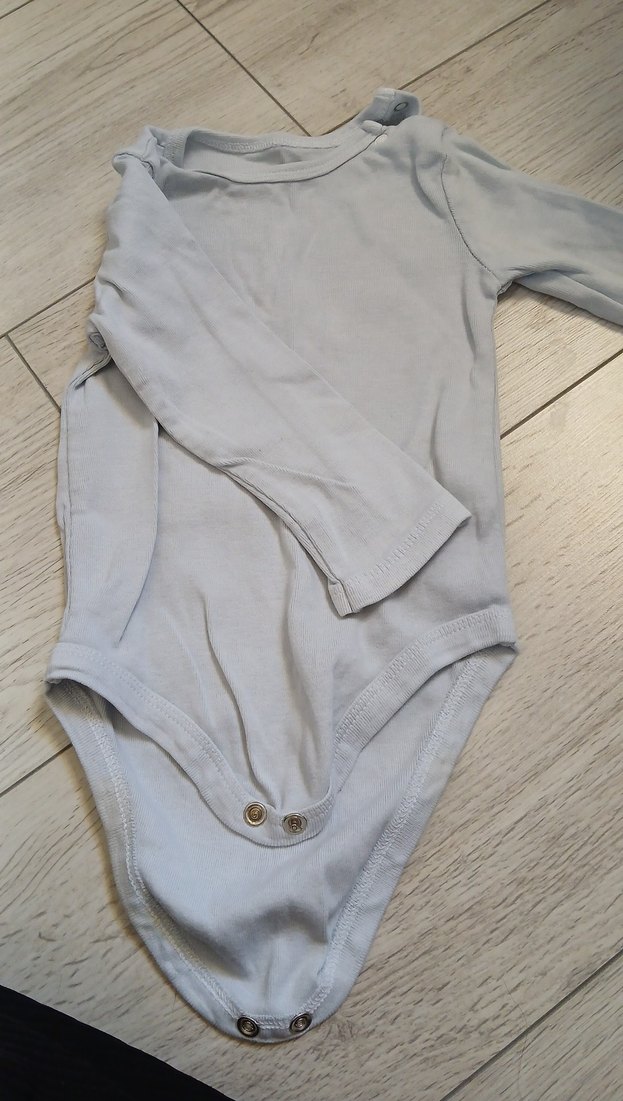 Gri renkli, uzun kollu, düğmeli ve yuvarlak yakalı pamuklu bebek body. Yumuşak kumaştan, desensiz ve rahat bir tasarıma sahip.