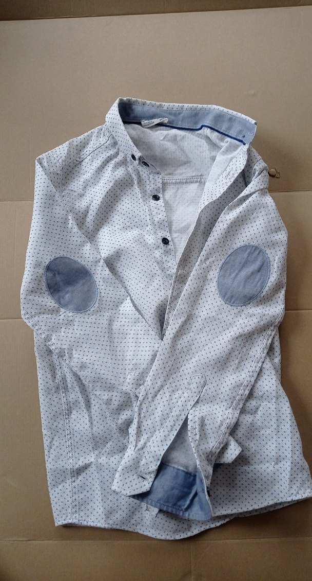 Yumuşak pamuklu kumaştan, düğmeli, yaka detaylı ve dirsek yamalı bol kesim erkek gömleği. Günlük sokak stili için uygundur.