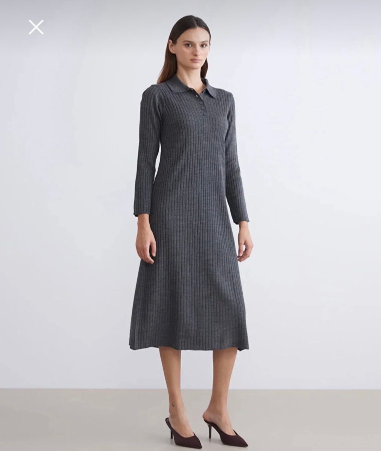 Gri renkte, yumuşak yün kumaştan, yakalı ve uzun kollu piliseli uzun elbise. Minimalist ve rahat tarzıyla ofis için uygundur. lCW M beden kışlık elbise geçen kış aldım ve sadece 1 kez giydim