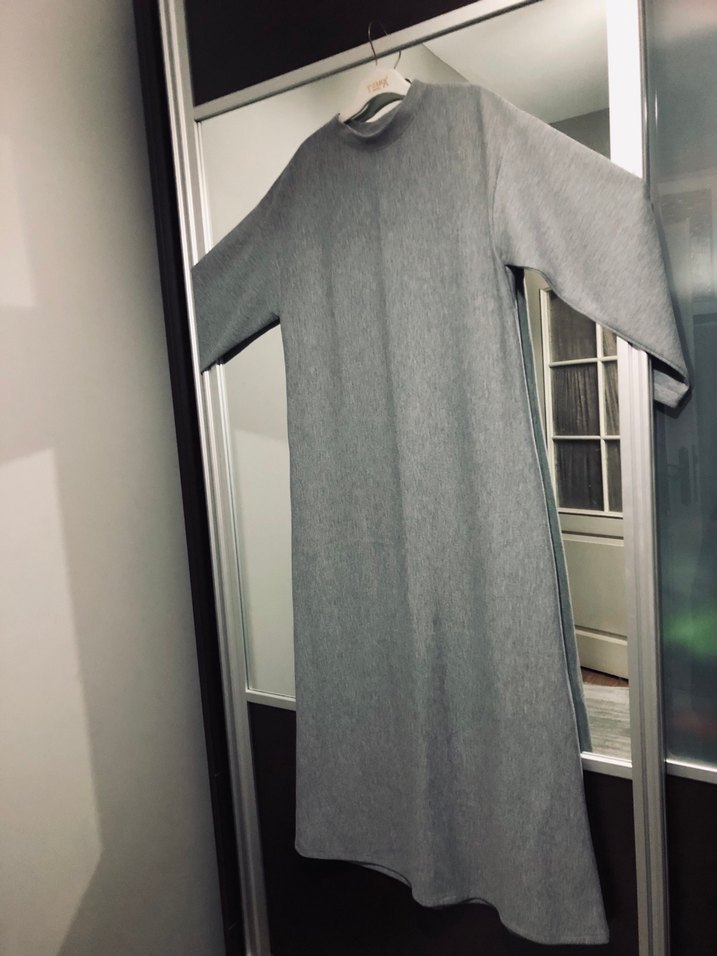 Gri Uzun Kollu Rahat Kesim Kadın Elbise bir kere giyilmiştir