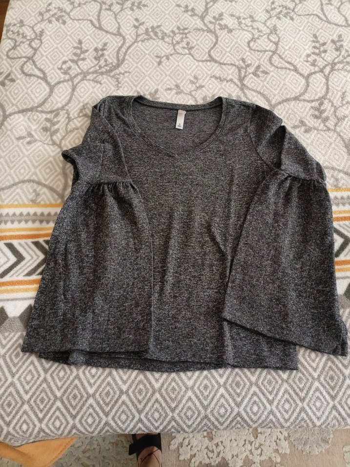 Gri renkte, yünlü kumaştan, uzun kollu ve rahat kesime sahip, yuvarlak yakalı, desen içermeyen günlük kullanıma uygun kazak. penti marka s ,m uyumlu