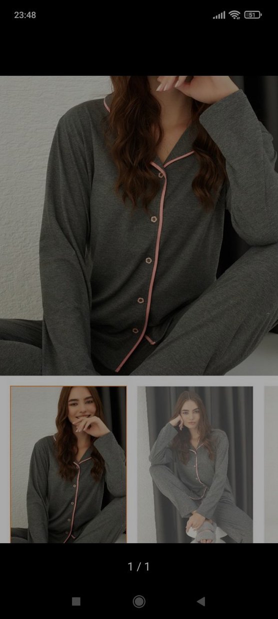 Gri renkli, uzun kollu ve bol kesim pijama takımıdır. Orta uzunlukta ve sade tasarıma sahiptir, rahatlık sunar.
