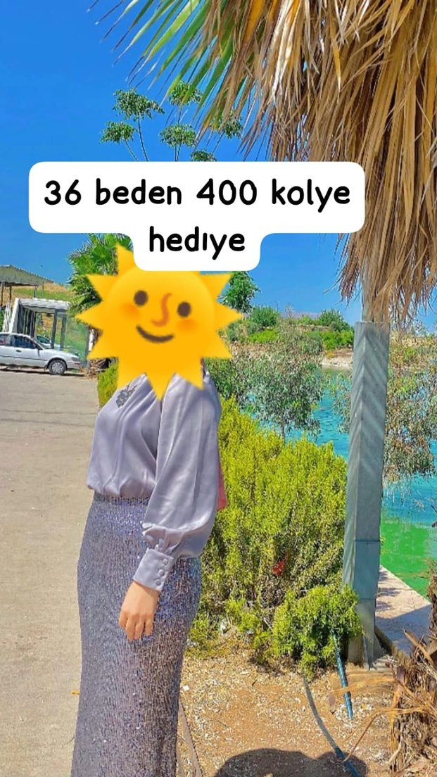 Gri renkte, yüksek yakalı ve uzun kollu salaş hamile bluz. Bağlama desenli ve payetli, sentetik kumaştan. 36 beden elbise kolye hediye.