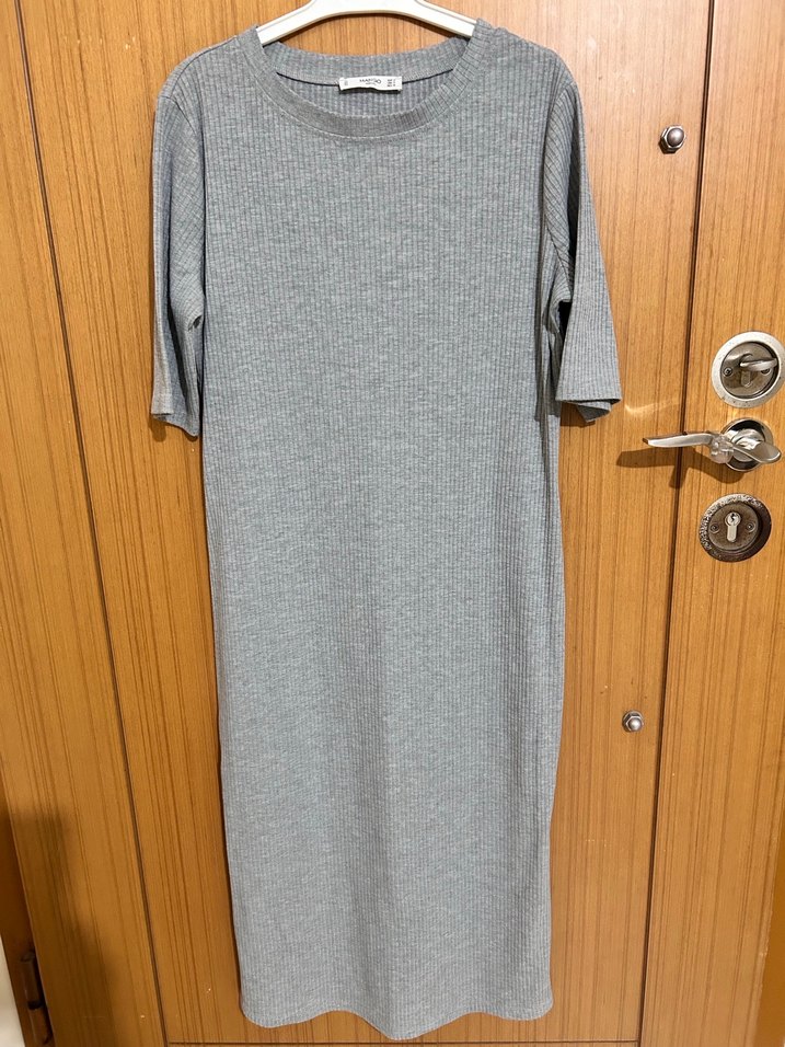 Gri renkte, kısa kollu, yuvarlak yakalı ve salaş kesimli uzun elbise. Yumuşak sentetik kumaştan üretilmiş, minimal ve normcore tarzında, rahat kullanıma uygun.