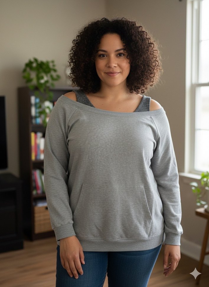 Gri renkli, tek düze ve rahat kesimli bu sweatshirt, kayık yaka ve uzun kolludur. Yumuşak ve sıcak kumaştan üretilmiş, günlük kullanıma uygundur. Bir kaç kez giyilmiştir.