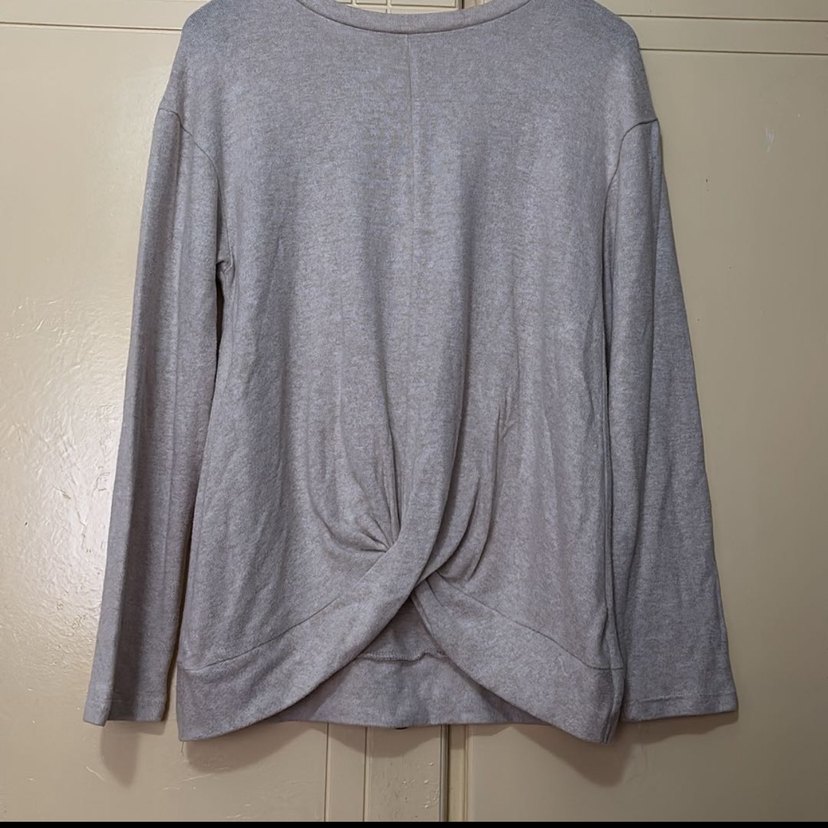 Gri renkte, keten kumaştan yapılmış uzun kollu, salaş kazak. 11/12 yaş ama 34/36 beden bir bayana bile olur kumaşı tiril tiril yumuşacıktır .Ön kısmı drapeli ve normal boyda, rahat ve gündelik kullanıma uygun