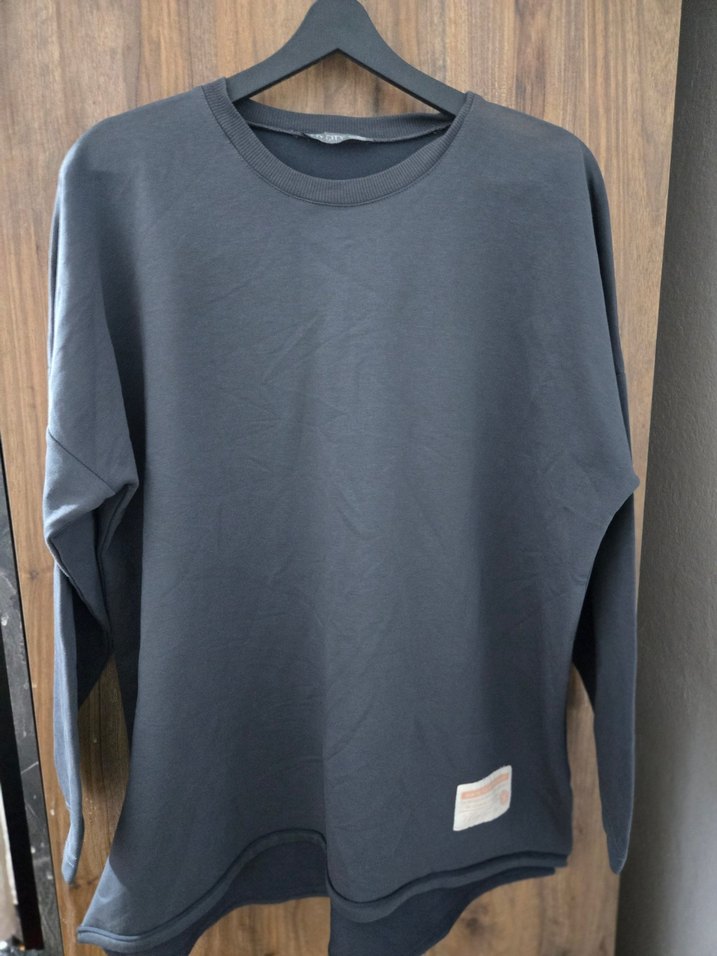 Gri renk, uzun kollu, yuvarlak yaka ve salaş kesime sahip sweatshirt. Yumuşak ve sıcak kumaştan yapılmış, desen içermeyen sade tasarım.
