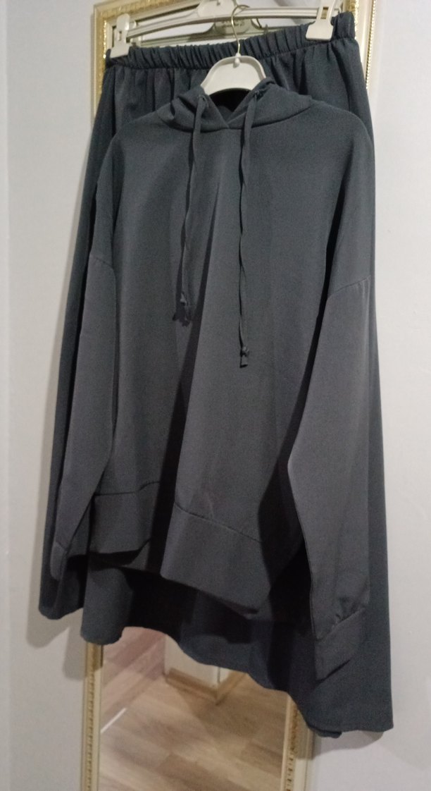 Gri Uzun Kollu Salaş Sweatshirt etekli takım