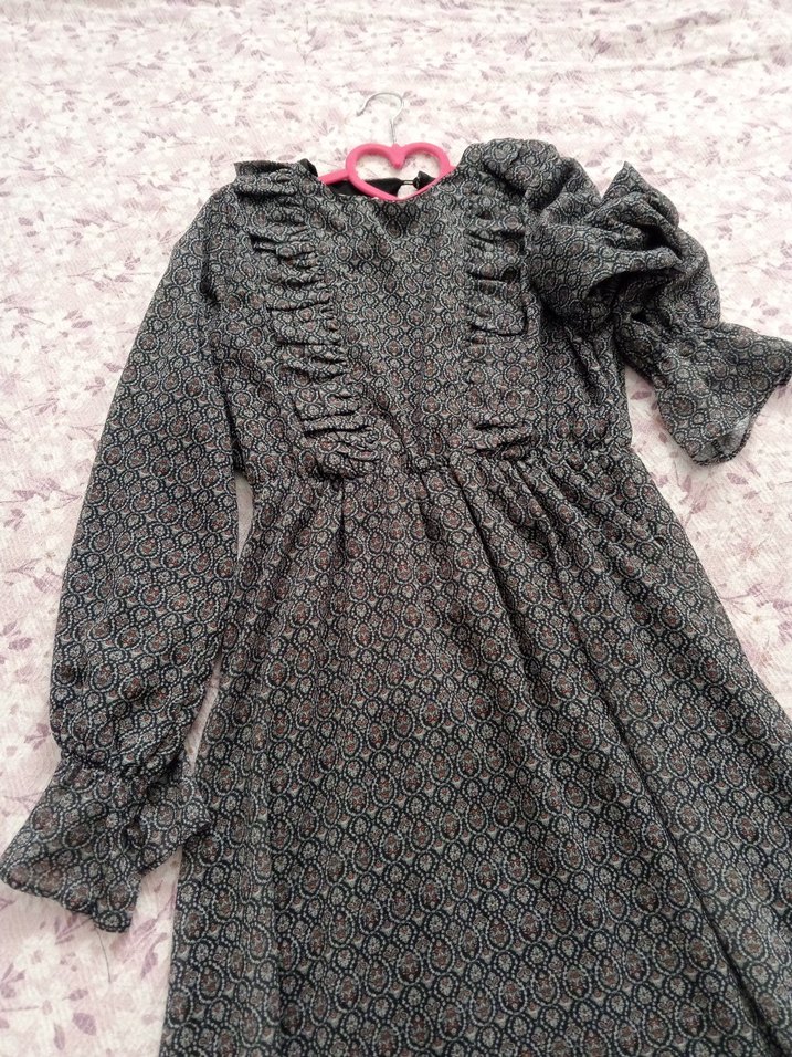 Gri Uzun Kollu şifon elbise