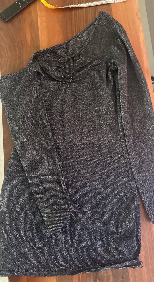 Gri Uzun Kollu simli mini yılbaşı için elbise