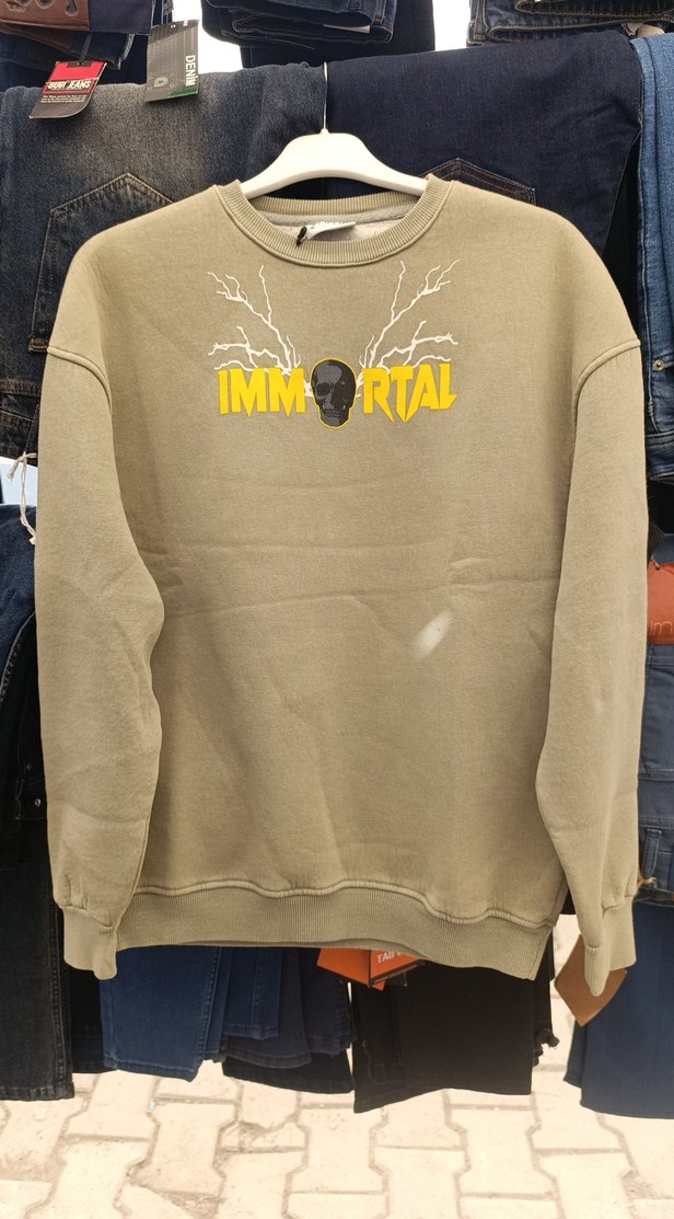 Gri renkli, uzun kollu, bol kesim ve baskılı kafatası desenli sweatshirt. Yumuşak kumaştan üretilmiş, rahattır. İçi şardonlu 3 ipliktir.☁️