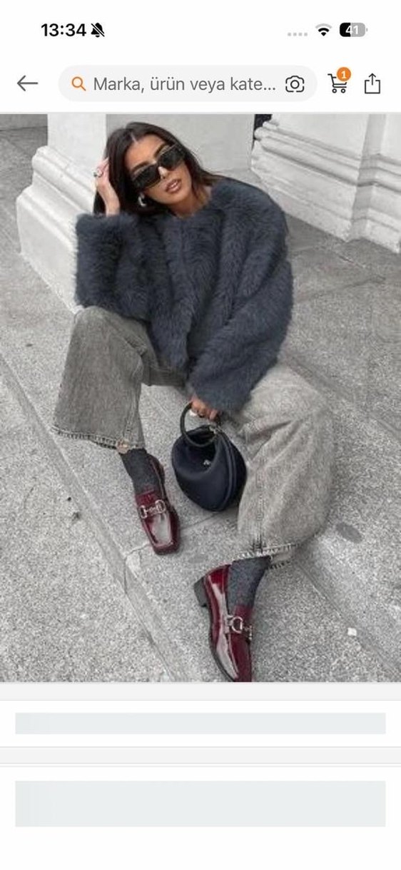 Gri renkte, suni kürk detaylı, uzun kollu ve yaka tipi kesik yaka olan, bol kesim günlük kullanıma uygun yün kumaştan midi boy ceket.
