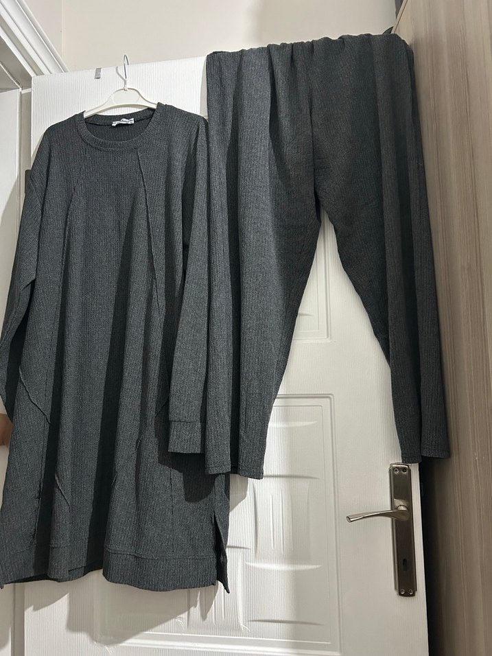 Geniş kesim, uzun kollu ve yuvarlak yakalı gri Dökümlü kumaşı rahat ve desensiz, şık ve modern bir tarz sunar.