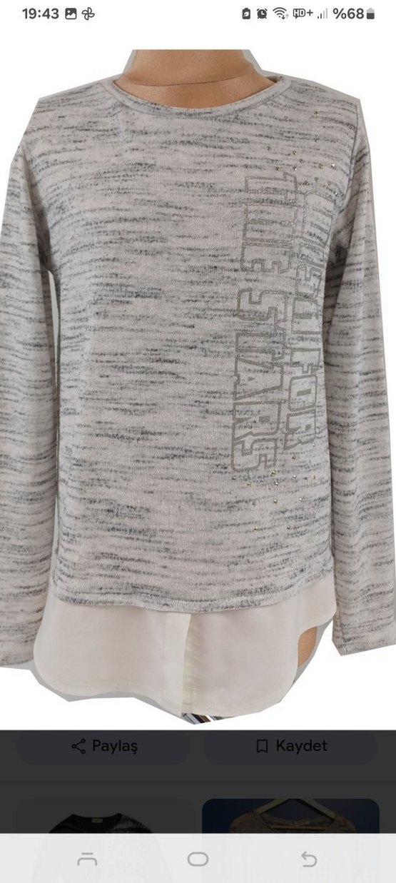 Gri renkli, uzun kollu ve yuvarlak yaka cocuk buluz kazak. Baskılı desenli, kısa ve katmanlı etek ucu ile rahat kesim. Sentetik kumaştan, sokak stiline uygun.