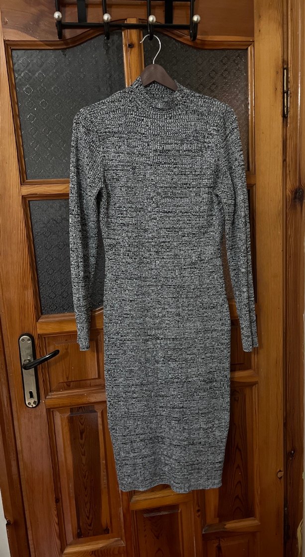 Yumuşak triko kumaştan, yüksek yakalı ve uzun kollu, gri tonlarda, vücuda oturan uzun elbise. Günlük kullanıma uygun sade ve rahat bir model. Boyu 115cm iki kol arası 42 cm esnek