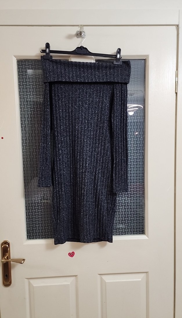 Gri renkte, uzun kollu ve triko kumaştan yapılmış, vücuda oturan, kayık yaka uzun elbise. Günlük kullanıma uygun sade ve rahat bir tasarım. hiç giyilmedi boy 84 cm iki kol aradi 44 cm