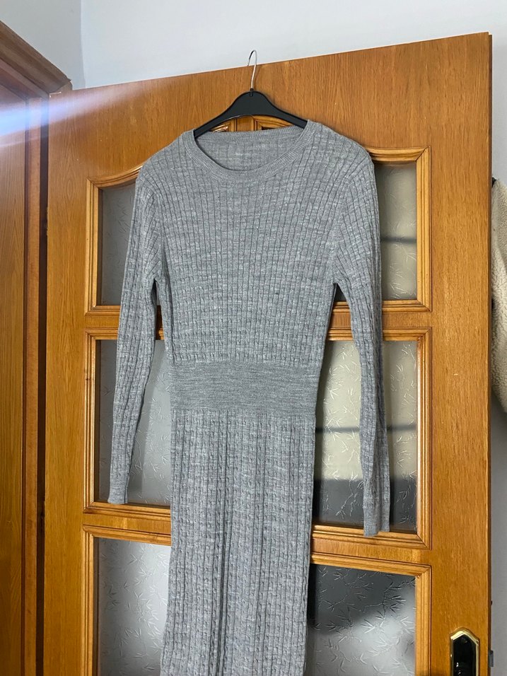 Gri Uzun Kollu Triko Elbise