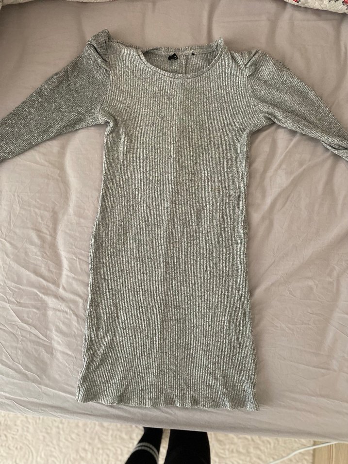 Gri Uzun Kollu Triko Kadın Elbise