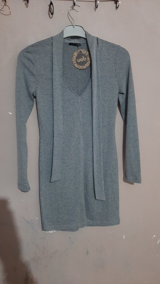 Gri Uzun Kollu Triko Kadın Elbise