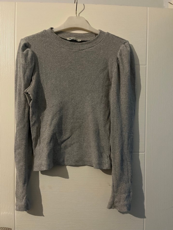 Gri renk, uzun kollu ve yuvarlak yaka, ince triko dokulu kadın kazak. Normal boyda, rahat ve sade tasarımı günlük kullanım için uygundur.