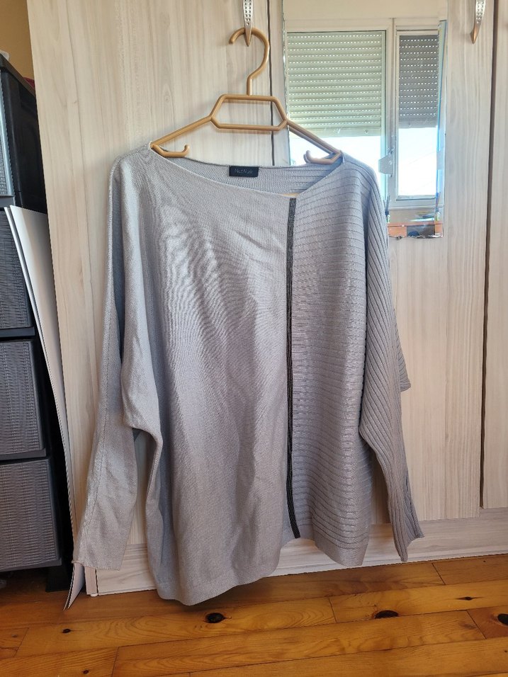 Gri renkte, uzun kollu ve yuvarlak yakalı, keten kumaştan örülmüş bol kesim kazak. Rahat ve desen içermeyen tasarımıyla gündelik kullanıma uygundur.