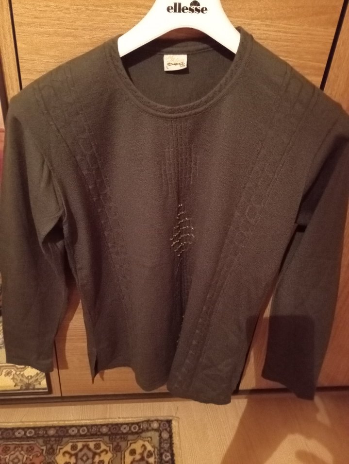 Gri renk, uzun kollu, yuvarlak yaka ve bol kesim triko kazak. Keten kumaştan üretilmiş, günlük kullanıma uygun rahat goth tarzı. ellesse markası mevcuttur.