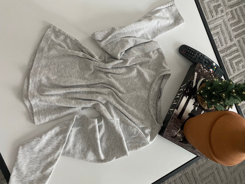 Gri renkte, uzun kollu ve bisiklet yakalı tshirt sorunsuz biraz dar kalıp