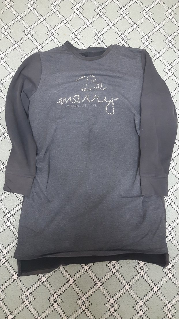 Gri renk, uzun boylu tunik, bol kesim ve örme sentetik kumaştan yapılmıştır. Uzun kollu ve yuvarlak yakalıdır, önünde baskılı desen vardır. Günlük kullanım için uygundur.